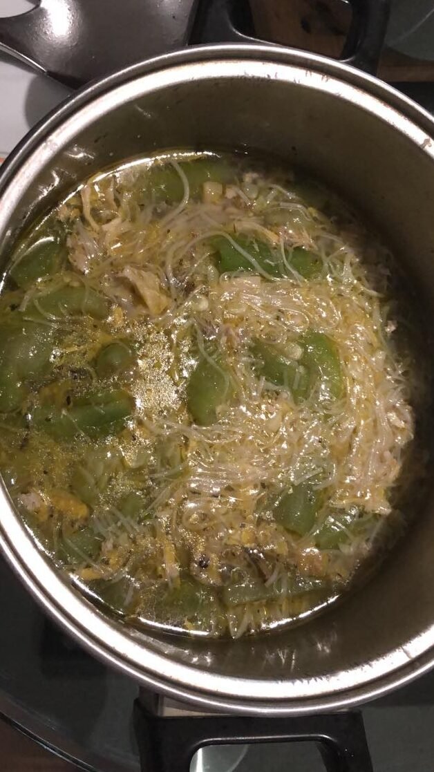 I shredded the chicken, stir fry some ground pork with garlic, added a spoonful of small dried scallops, pour hot water into everything to boil, and added the patola and misua near the end. Out came this dish which hubby had for night snack.