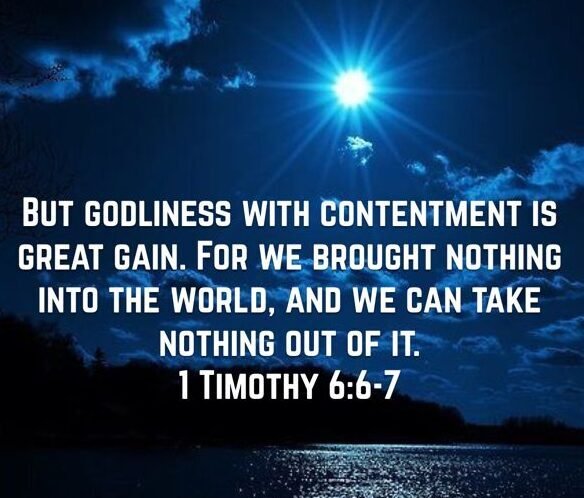 But godliness with contentment is great gain. For we brought nothing into the world, and we can take nothing out of it. But if we have food and clothing, we will be content with that.