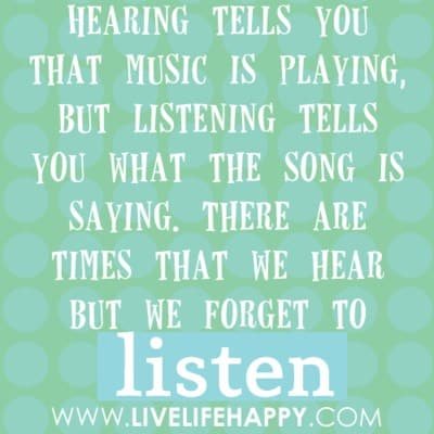 When I sing at choir, there is a big difference whether I hear or I listen. I might hear the melody and the beat of the song. But I sing better when I listen to my seatmates and pay attention to the lyrics of what I’m singing.