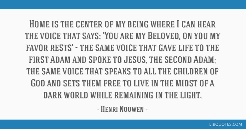 “If you believe you are the beloved of God, you need to spend time listening to his voice, period! You can’t say God calls me His beloved, but I have got to go out and do something now.” ~ Henri Nouwen