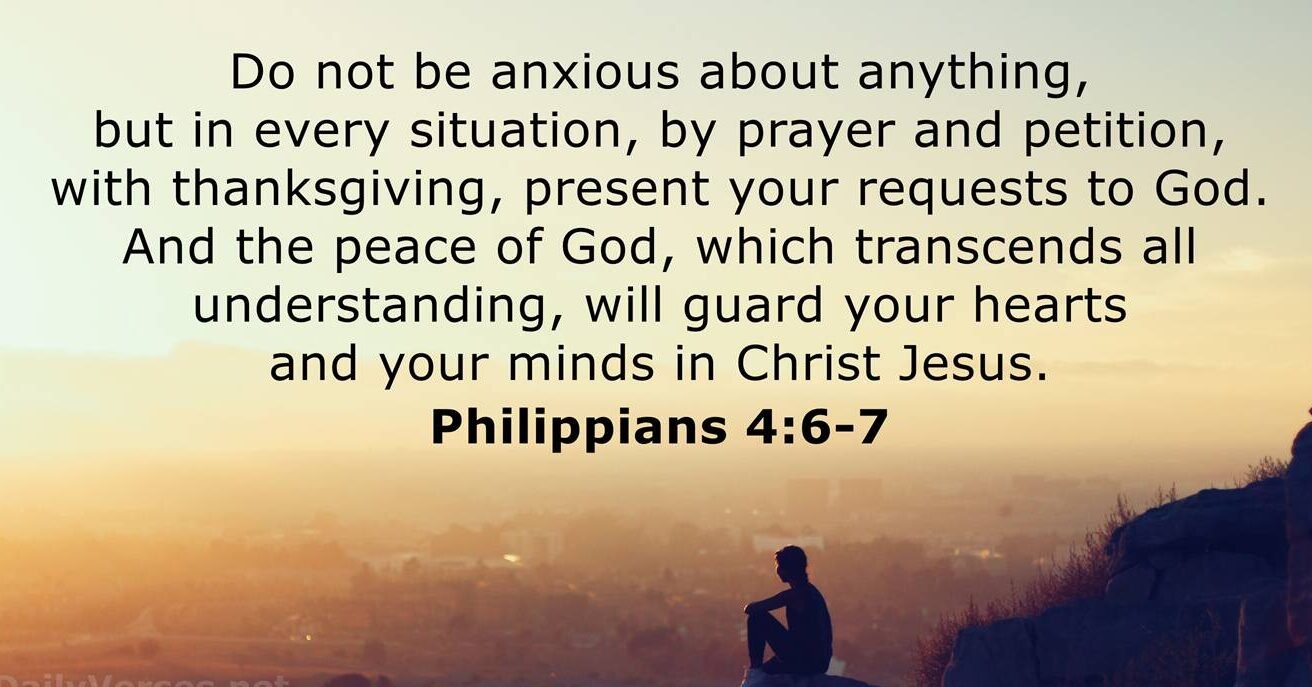 Dear heavenly Father, thank you for the privilege of prayer. Thank you that we are not to worry about anything but in everything, we can pray to you in supplication and thanksgiving. And your peace, which is beyond human understanding will keep our hearts and minds in Jesus Christ. Amen.